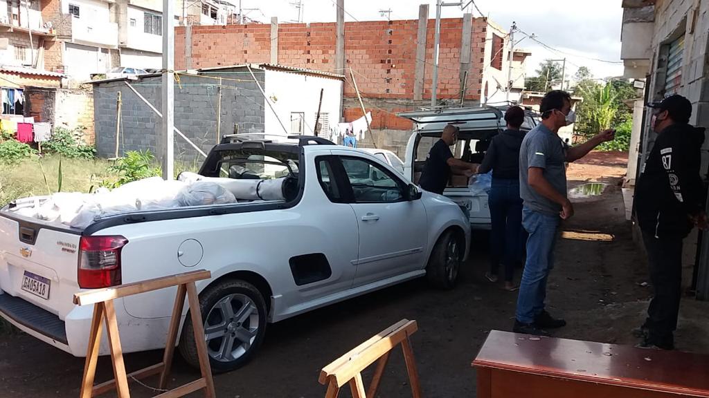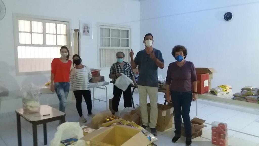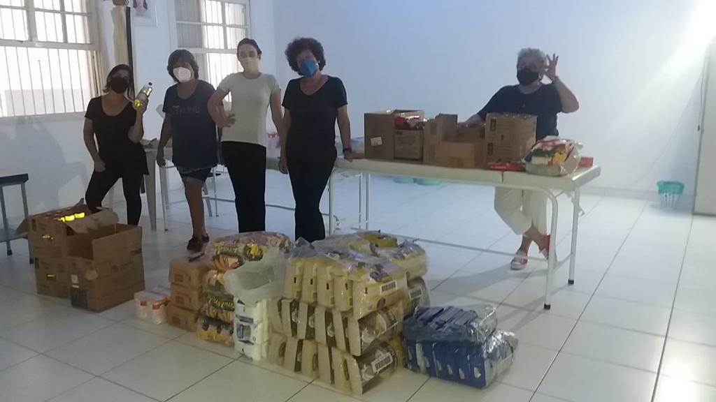 Nas imagens abaixo, temos algumas fotos da distribuição e da montagem das cestas. Também temos foto das notas fiscais dos valores gastos com parte dos alimentos faltantes.