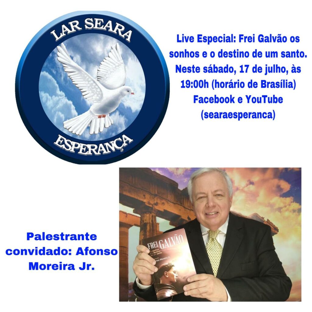 No dia 17 de Julho de 2021 às 19h (horário de Brasília), ocorrerá uma Live Especial onde o nosso palestrante convidado Afonso Moreira Jr. irá apresentar o tema “Frei Galvão os sonhos e o destino de um Santo”.